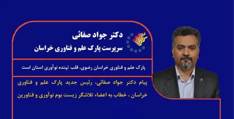 ️پیام جواد صفائی، سرپرست پارک علم و فناوری خراسان خطاب به اعضای تلاشگر زیست‌بوم نوآوری و فناوری استان