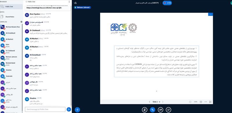 جلسه‌ای آنلاین با محوریت رفع نیازهای پژوهشی شرکت «مس کومه صنعت» با حضور جمعی از اساتید دانشگاه، شرکت‌های فناور، پردیس علم و فناوری سبزوار پارک علم و فناوری خراسان‌رضوی و دفتر ارتباط با جامعه و صنعت برگزار شد.